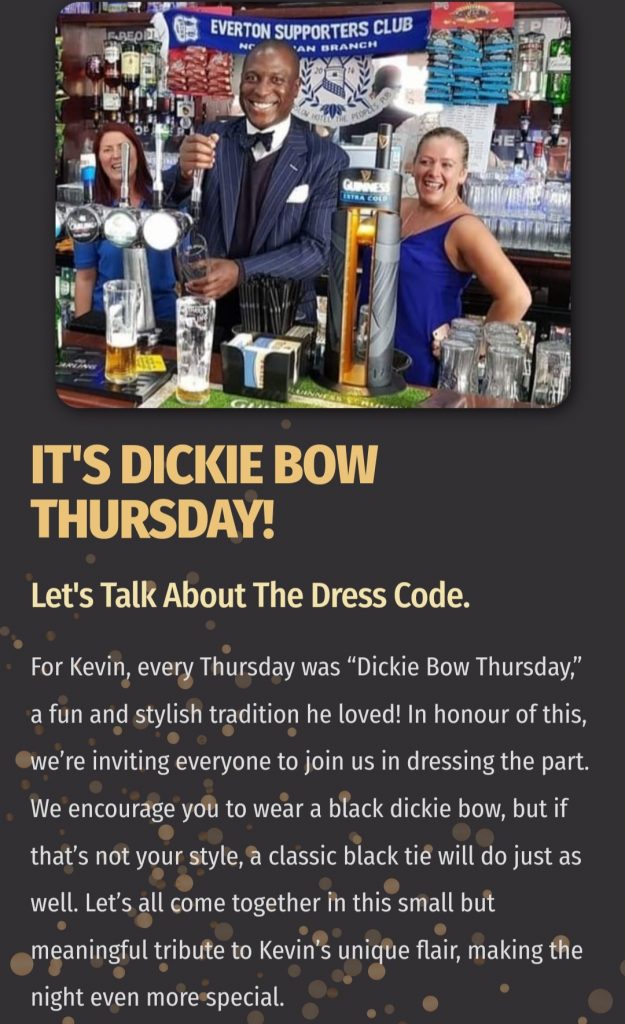 In tribute to Kevin’s tradition of “Dickie Bow Thursdays,” 🎩 we’ve made this the dress code for the evening. We are dedicated to making this event as remarkable as Kevin always intended, with special guest speakers and more announcements to come.