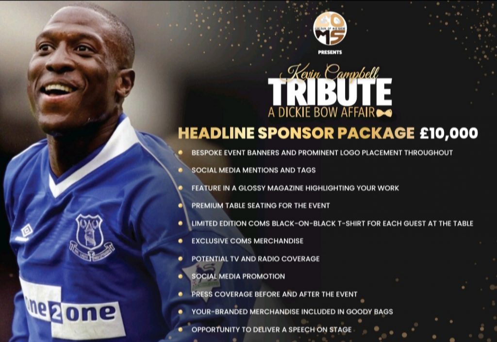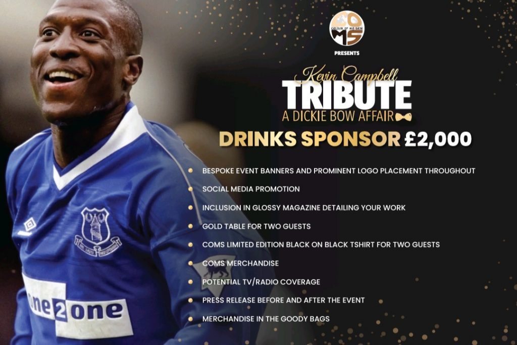 On Thursday 12th December 2024, we are proud to present Kevin Campbell Tribute: A Dickie Bow Affair at the Isla Gladstone Conservatory in Liverpool. Kevin was truly at the heart of Colour of My Skin—he deeply believed in our mission and everything we do. This night will be a celebration of his incredible legacy, honouring him with those who loved and cared for him. 💛