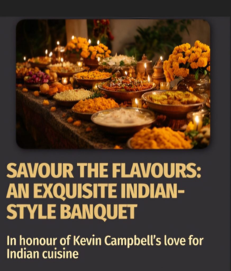 In honour of Kevin’s love for Indian Food, Your BANQUET for the evening