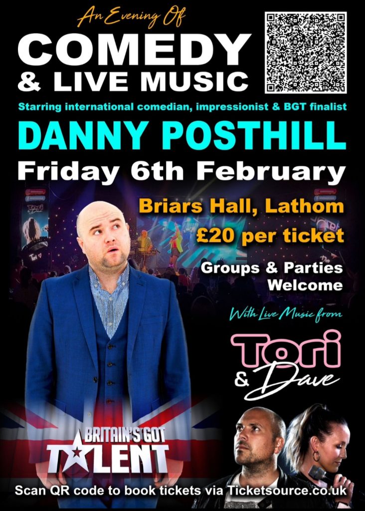 Join us for an electric evening with Britain’s Got Talent Finalist Danny Posthill – the internationally acclaimed comedian and impressionist who will have you in stitches with his side-splitting sketches and spot-on voices.