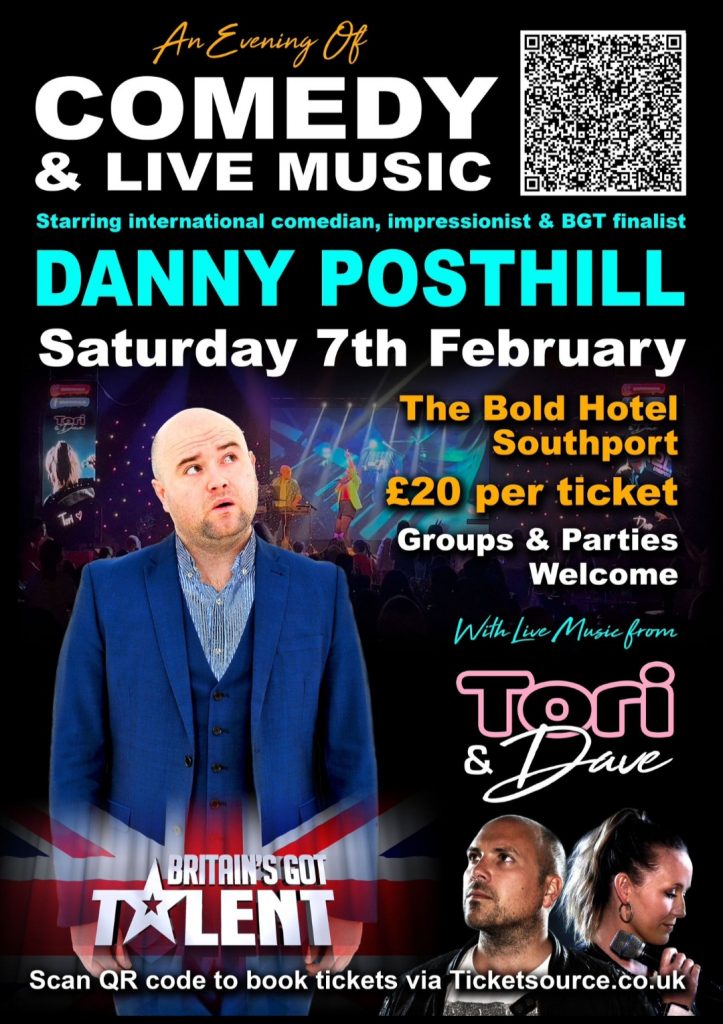 Starring Britain’s Got Talent Finalist Danny Posthill & Live music from Tori & Dave